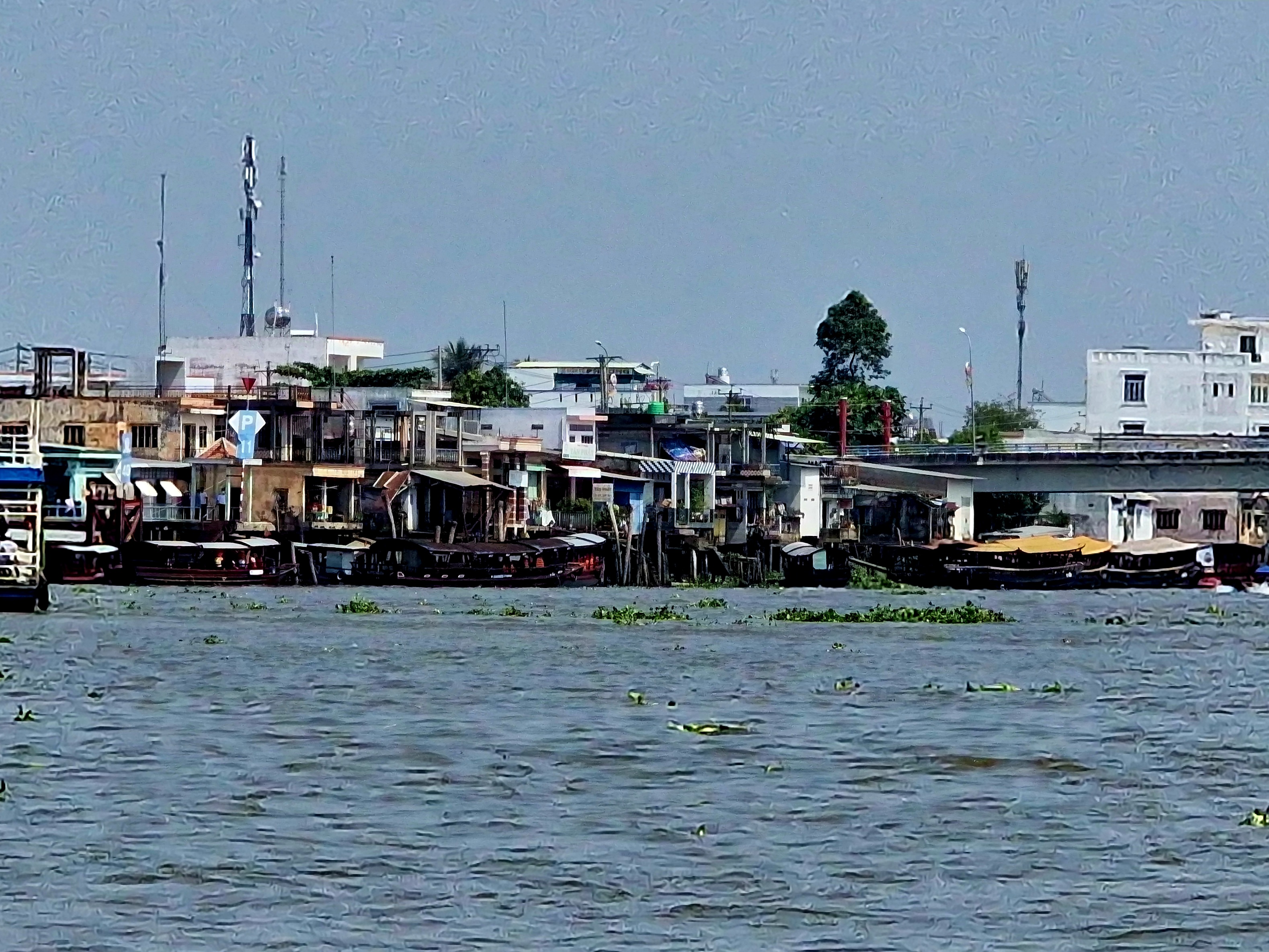 Na lunch popłynęliśmy na drugą stronę Mekongu. Wzdłuż jego brzegów mijaliśmy gęsto rozmieszczone domy na palach. Większość była w dość opłakanym stanie, choć od czasu do czasu, niczym perełki, pojawiały się też okazałe wille. Nie bardzo było gdzie zacumować, więc nasza łódź zatrzymała się na wprost sklepu z trumnami. Przeszliśmy przez jego wnętrze i po przejściu kilkuset metrów wśród mniej lub bardziej zabałaganionych posesji, pełnych kur, psów i kogutów, trafiliśmy do dużej restauracji zlokalizowanej w historycznym domu z 1838 roku (wpisany na listę UNESCO). Tu zaserwowano nam tradycyjną zupę z długim i cienkim makaronem, pieczoną rybę podaną w całości na specjalnym stojaku (zwaną Ucho Słonia), sajgonki, ryż, mięso wieprzowe, krewetki oraz owoce.
